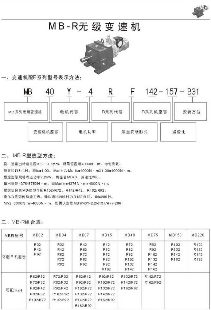 MB-R無級(jí)變速機(jī)型號(hào)表示法選型方法MB-R組合表